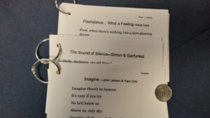 歌詞をカードにして持ち歩く際、カードをリングで綴じると便利です。