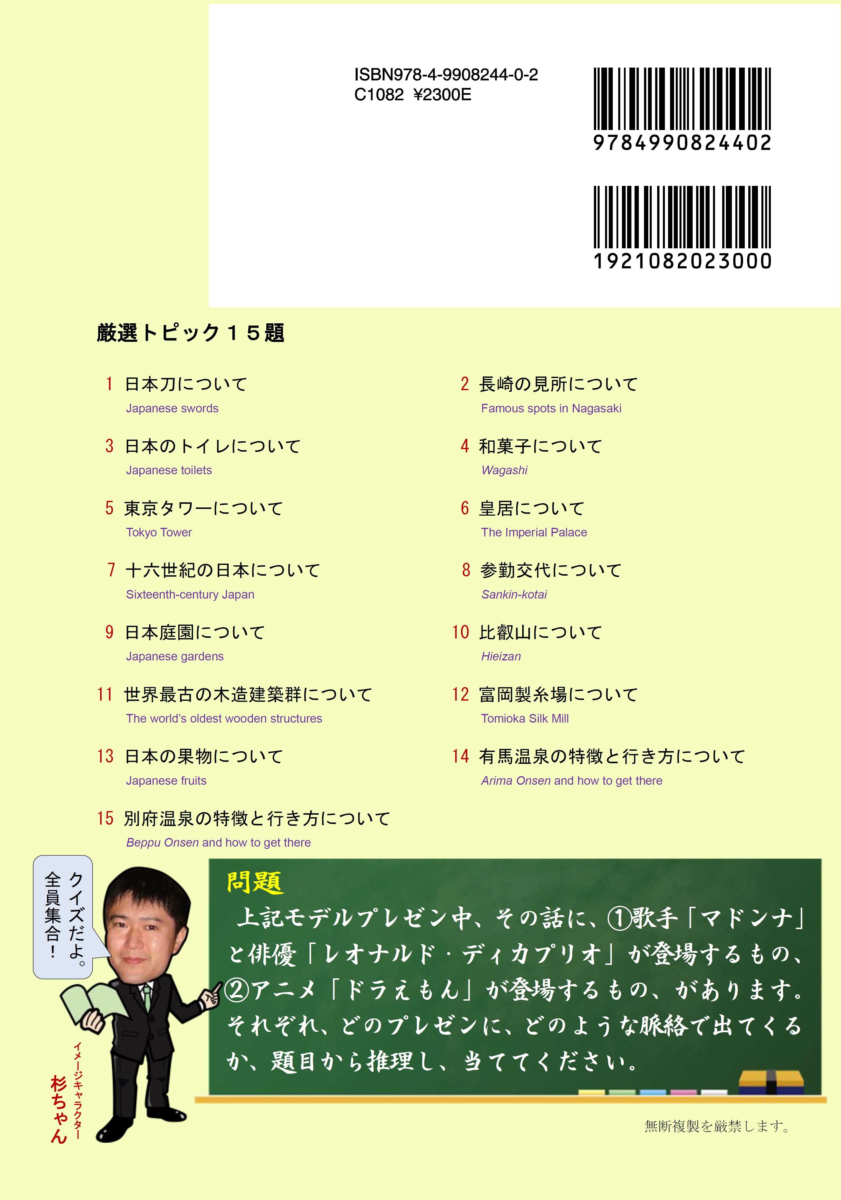 A5版 全60頁 CD1枚付 定価2,500円(税込)⇒セール中2,000円 掲載トピック 日本刀、長崎の見所、日本のトイレ、和菓子、東京タワー、皇居、十六世紀の日本、参勤交代、日本庭園、比叡山、世界最古の木造建築群、富岡製糸場、日本の果物、有馬温泉の特徴と行き方、別府温泉の特徴と行き方 Webちらし 立ち読み(pdf)