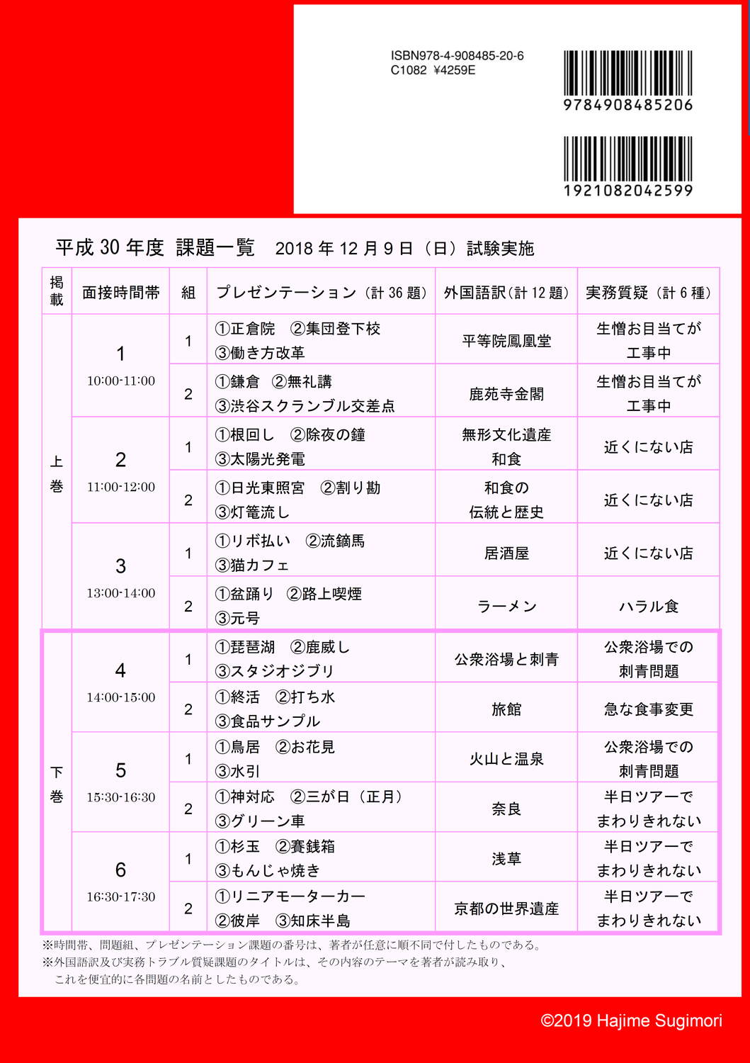 全国通訳案内士試験(新しくなった通訳ガイド試験)二次口述の全容を明らかにする唯一の書籍シリーズ。平成30年の通訳案内士法改正とそれに伴う新ガイドラインにより追加された新課題「実務質疑」を含む全出題を、上下巻で完全に再現。これに解答例と解説を加えました。もちろん新課題だけでなく、従前からの課題である「通訳」(外国語訳)と「プレゼンテーション」も、全問題が再現され、解答例・解説が付されています。