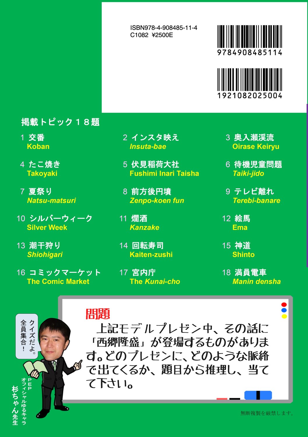 「通訳案内士試験はH25年度に新形式に移行し、過去問の蓄積が始まりました。フタを開けてみると「明治維新」「新幹線」「浮世絵」「正月」などの「定番トピック」が繰り返し出題されており、過去問研究の重要性はますます高まっています。本書を使って、重要トピックを、好評の「モデルプレゼン方式」でマスターしてください!