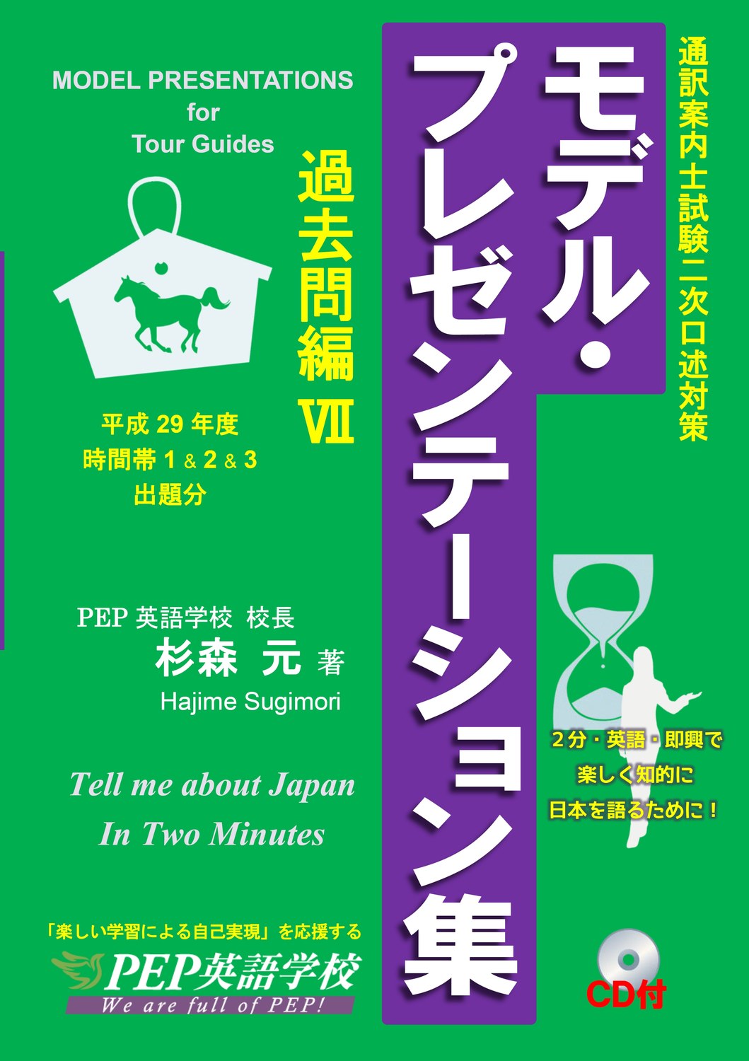 ※『モデル・プレゼンテーション集過去問編』に掲載されているプレゼン例と和訳は、『過去問詳解』掲載のものと同一ですが、『過去問詳解』と『モデル・プレゼンテーション集過去問編』は、前者が試験問題の概観をコンセプトにしているのに対し、後者は演習を眼目に置いているという点で、両者は守備範囲を異にします。よって、両書を併用されることをお勧めします。具体的には、以下の点が違います。 ①『過去問詳解』の解説は、語句解説であるのに対し、『モデル・プレゼンテーション集過去問編』の解説は、出題トピック内容分析、スピーチ構造に関する解説であること、②『モデル・プレゼンテーション集過去問編』は、英和見開き参照レイアウト、持ち運びしやすいA5サイズ等、演習に適したデザインを採っていること、③『モデル・プレゼンテーション集過去問編』には、朗読CDが付されていること